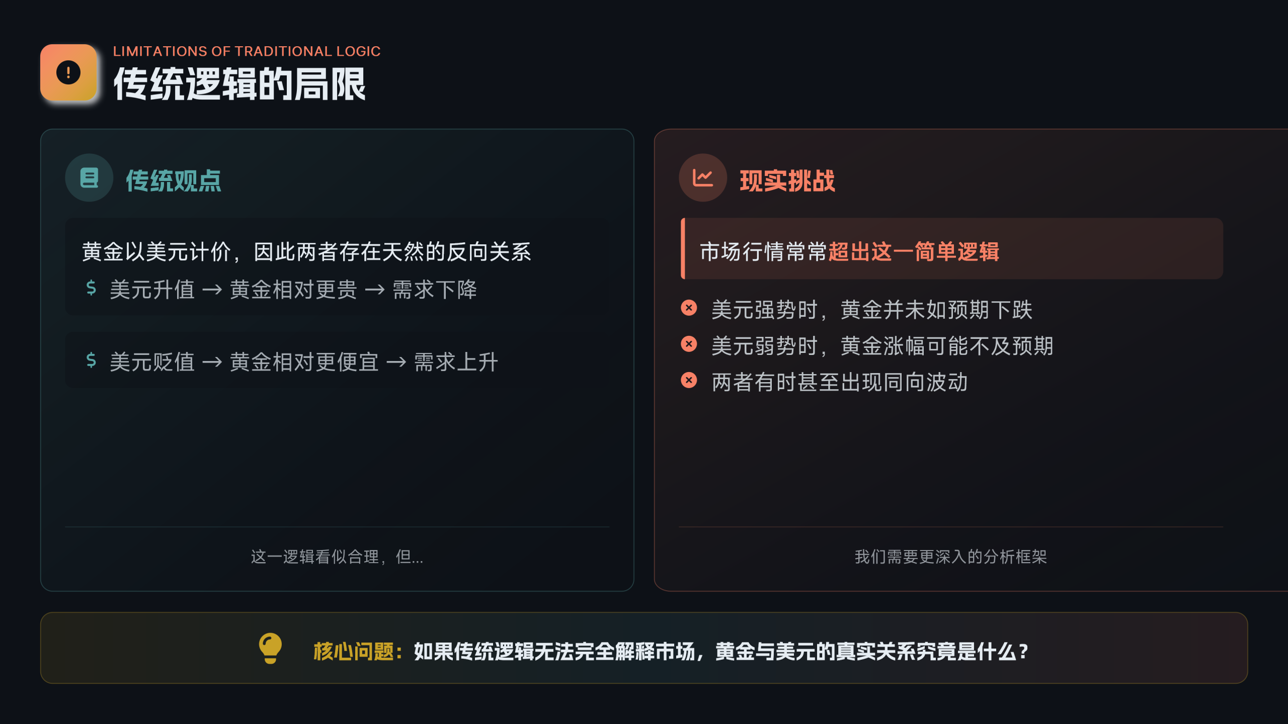 很多人学到的第一套逻辑,都是“跷跷板”:美元强,黄金弱;美元弱,黄金强。