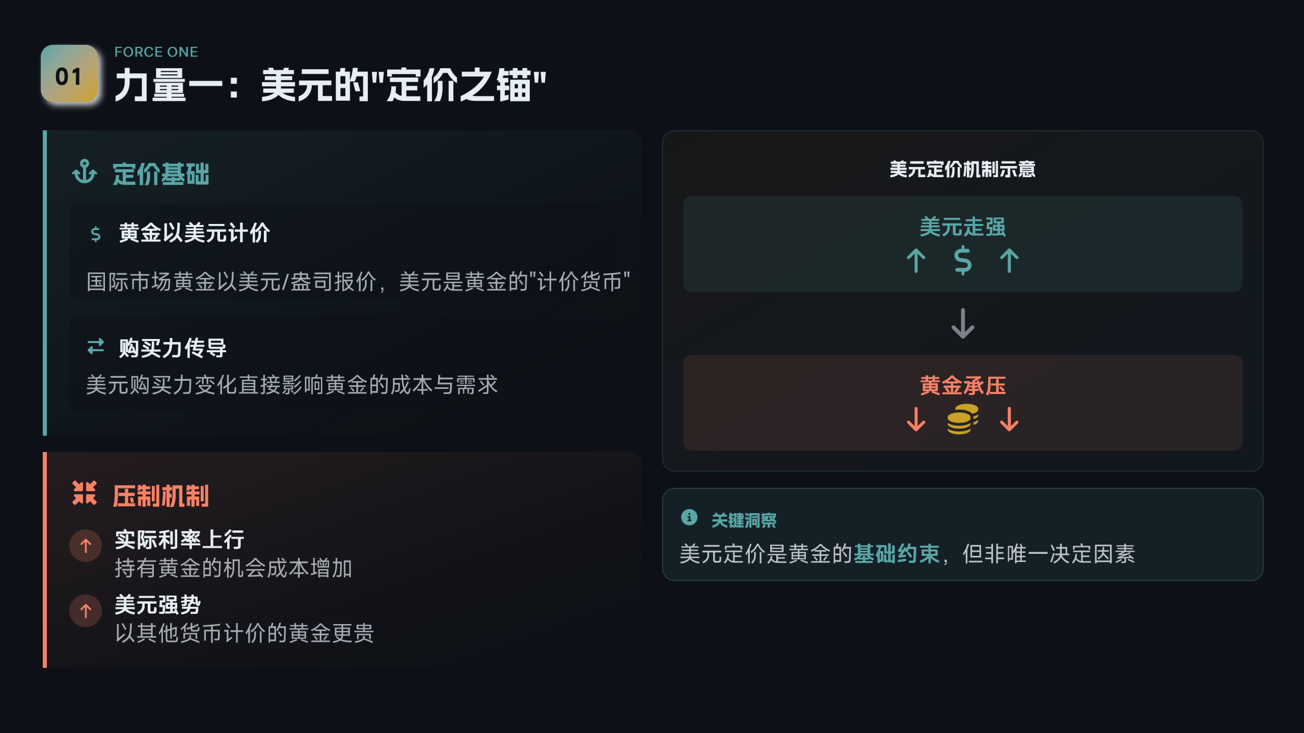 第一股力量是美元的“定价之锚”。黄金以美元标价,美元的购买力变化,决定了买一盎司黄金需要付出多少成本。