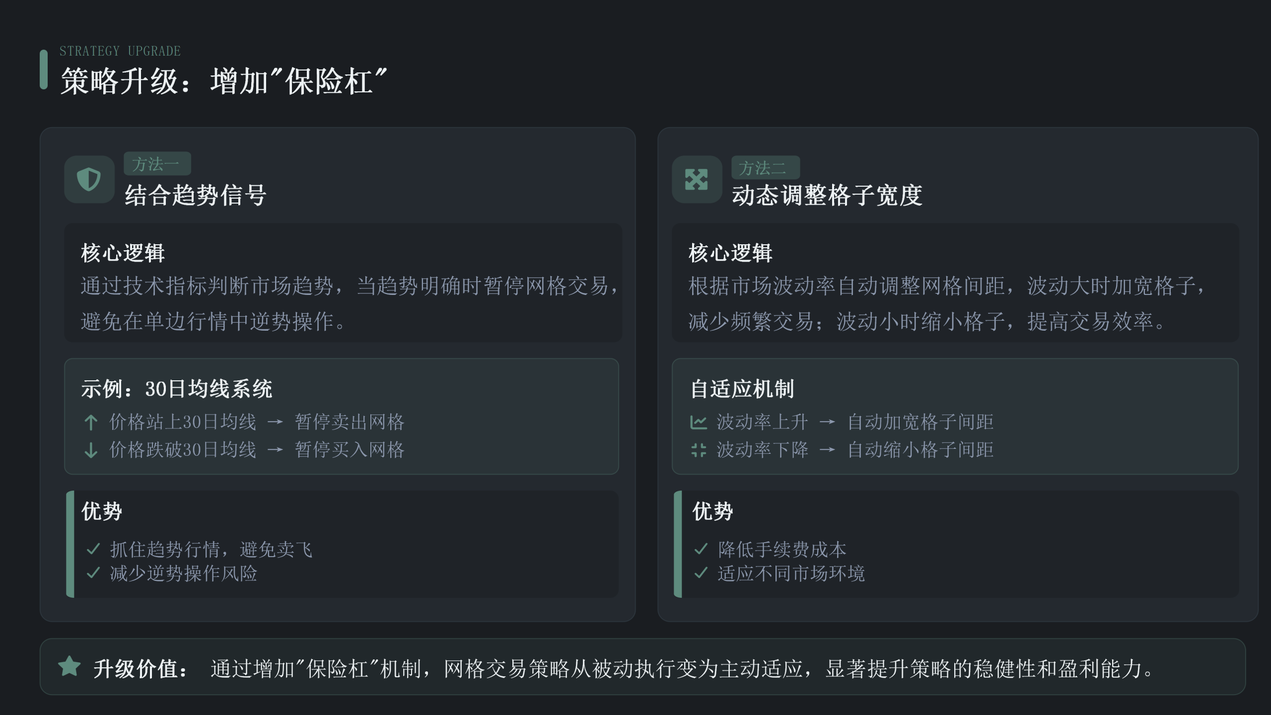 一是结合趋势信号。比如股价站稳30日均线以上,就暂停网格、改为跟踪趋势。