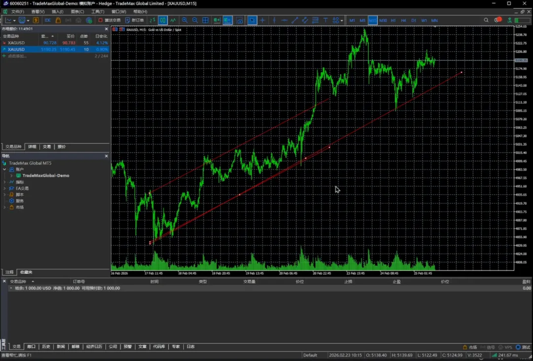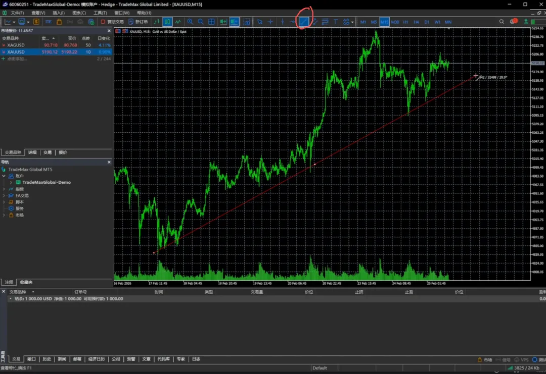 那当然对于画图画线平时Trading View使用的比较多,我主要用Trading View去看盘,然后在MT5里面去下单。