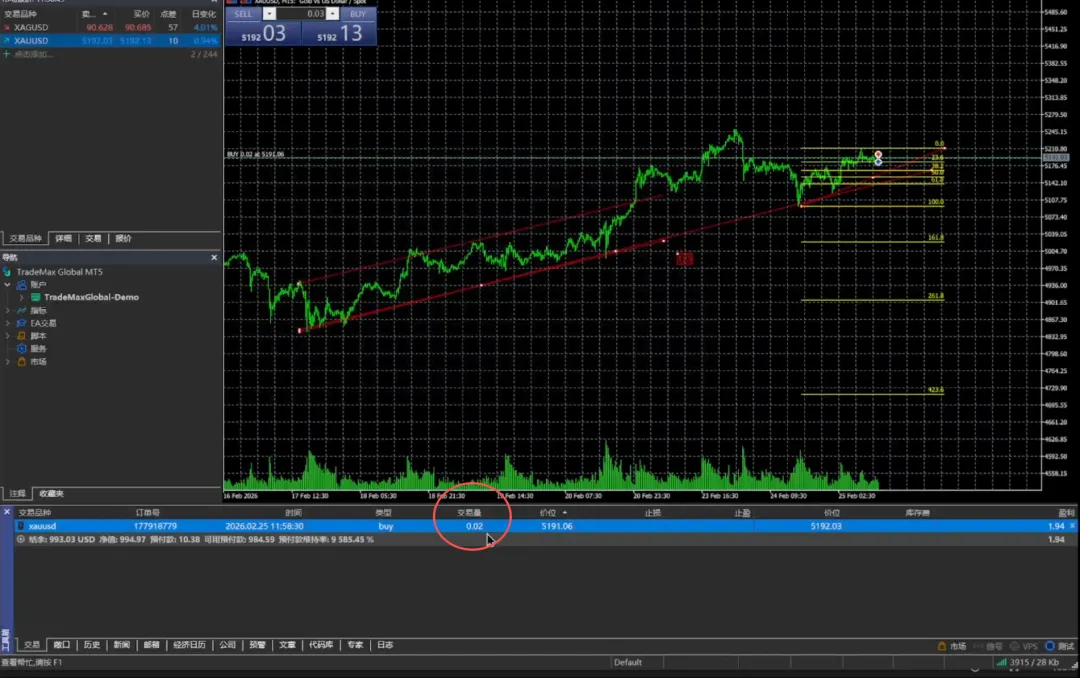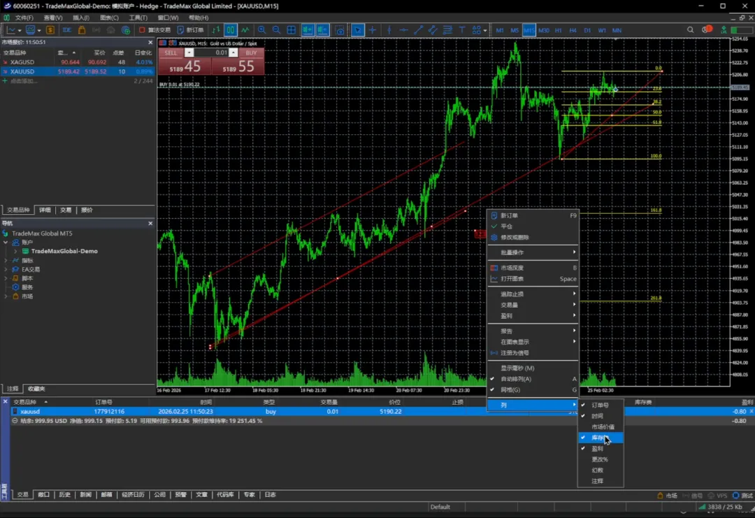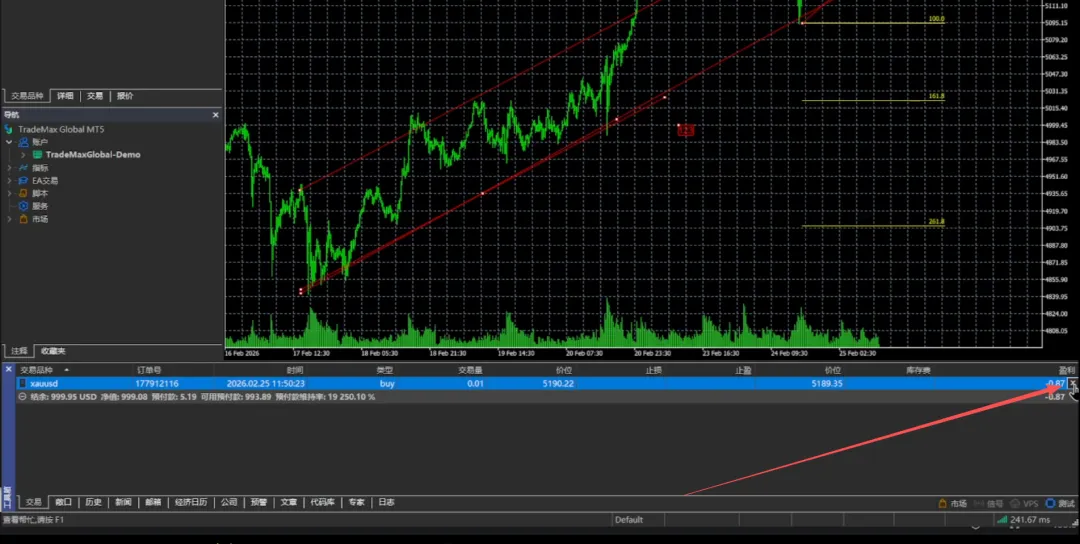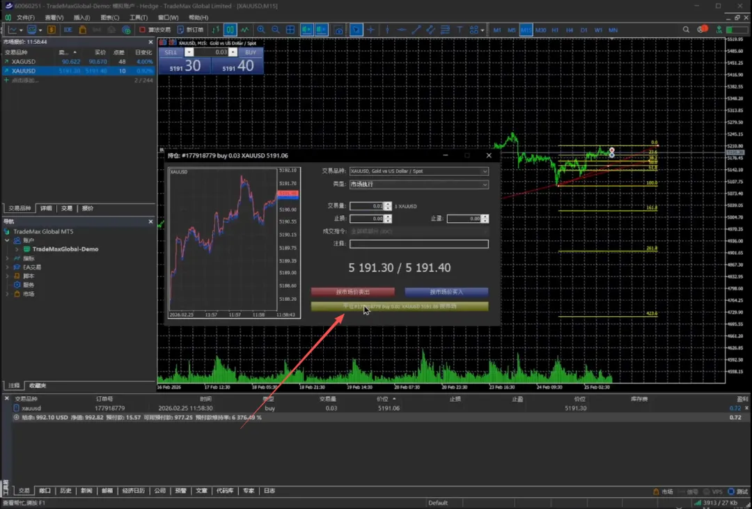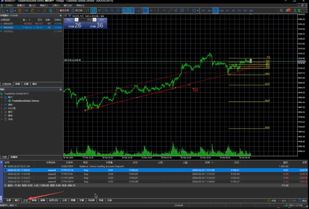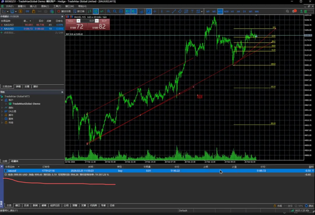 我们再点一下,我们可以看到它就已经买进来了。当前我们买入的价位是 5190.22 。