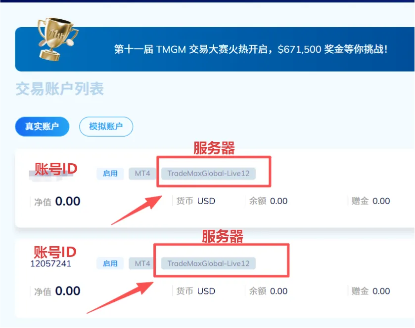 我们可以看到登录的用户名,密码以及服务器,那我们在申请完交易账号之后我们邮箱会收到服务器的编码,这个编码我们也可以通过后台去查看。